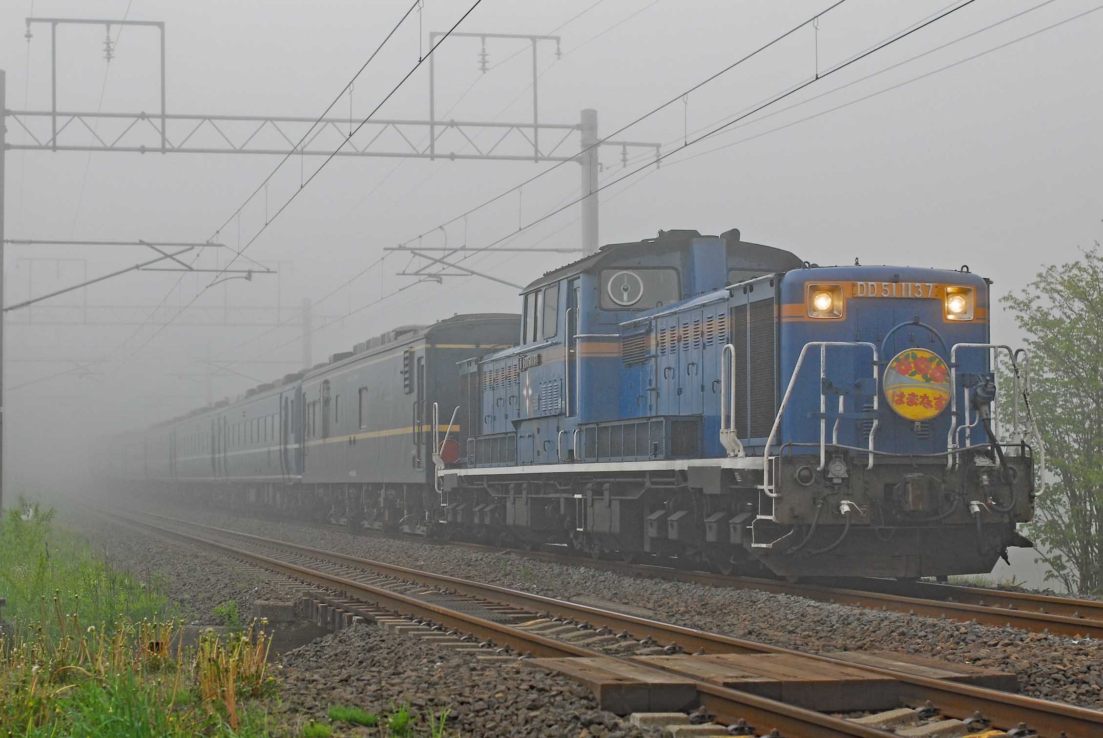 2013(平成25).06.07 千歳線島松〜北広島 DD511137(函)+マヤ34-2008+14系座席車5両+寝台車2両(札サウ) 201レ