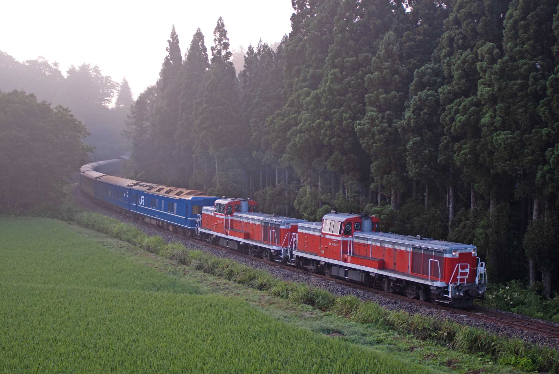 2011.08.13 北上線ほっとゆだ〜ゆだ高原 DE101187(秋)+DE101759(秋)+24系25型9両(盛アオ) う9025レ あけぼの号