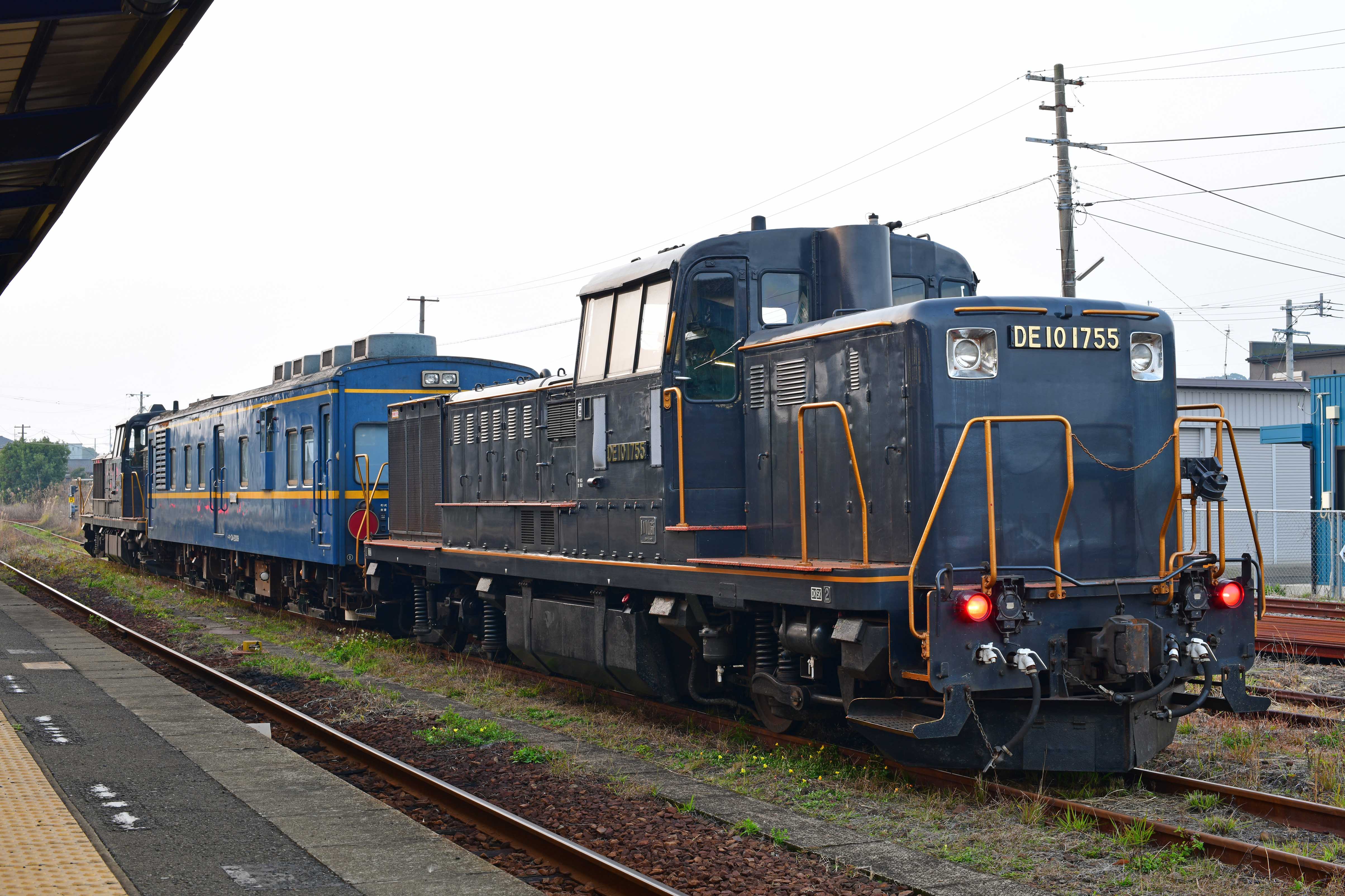 2024(令和06).02.11 指宿枕崎線指宿 DE101755(鹿)+マヤ34-2009(熊クマ)+DE101209(熊) 回9367レ/
