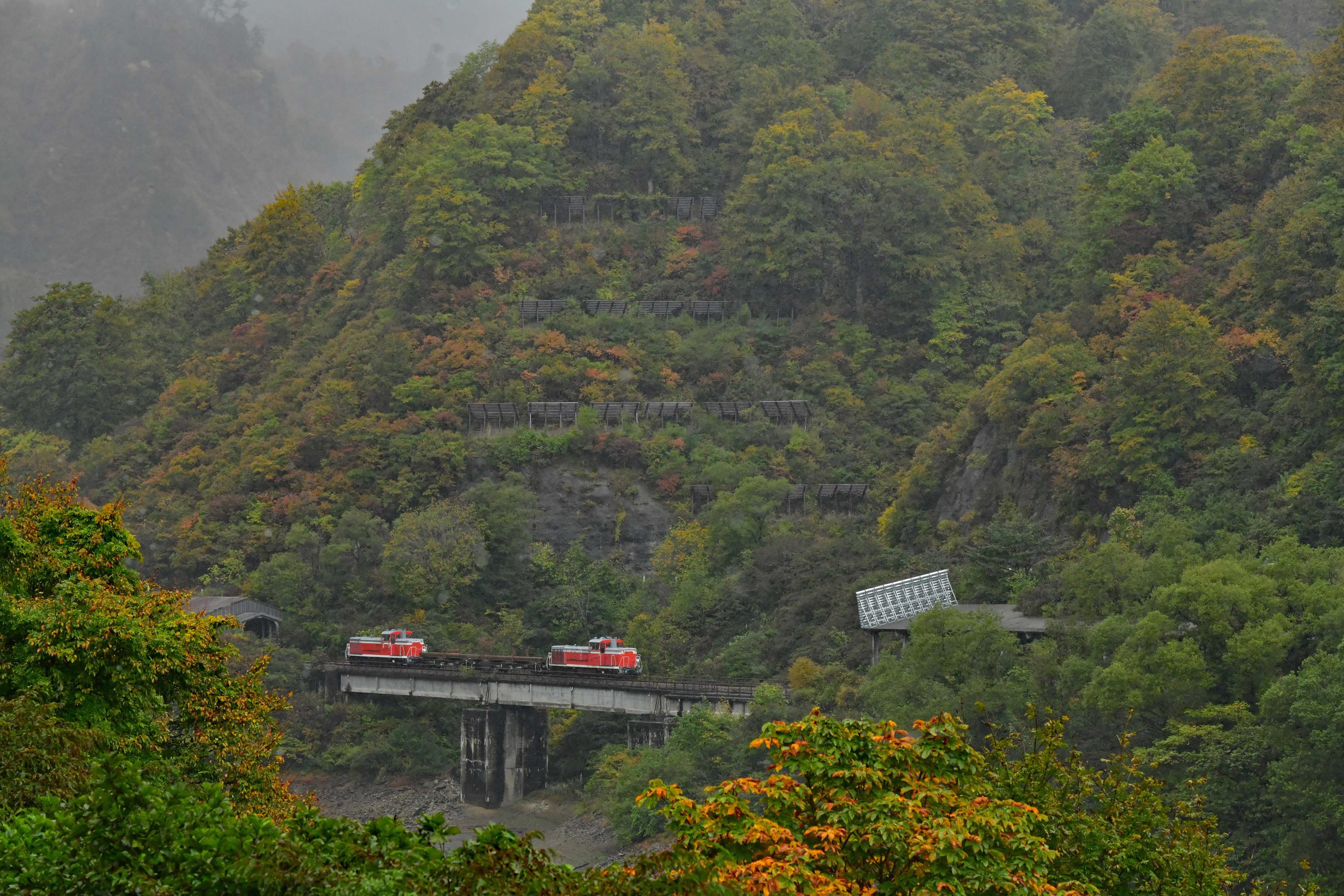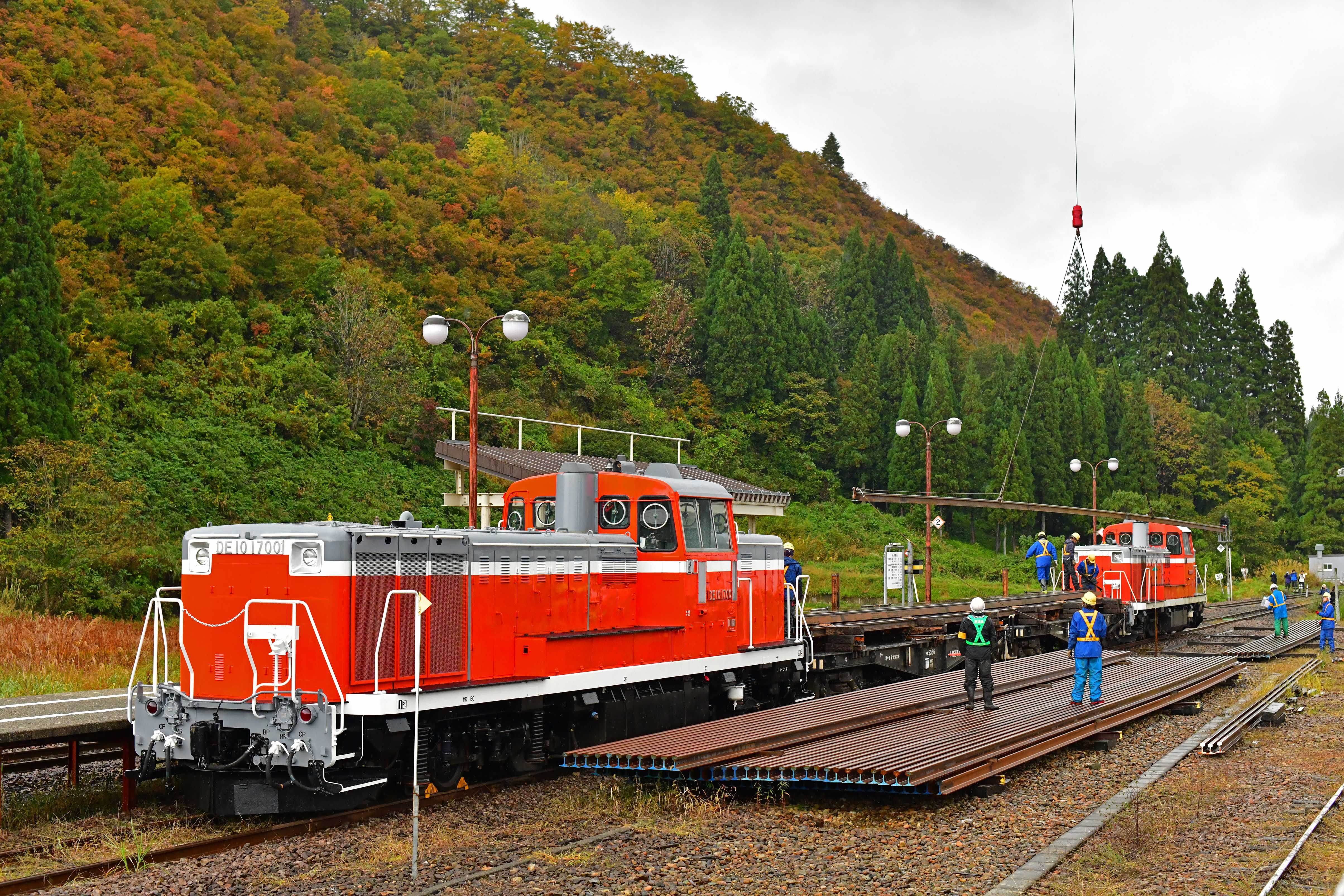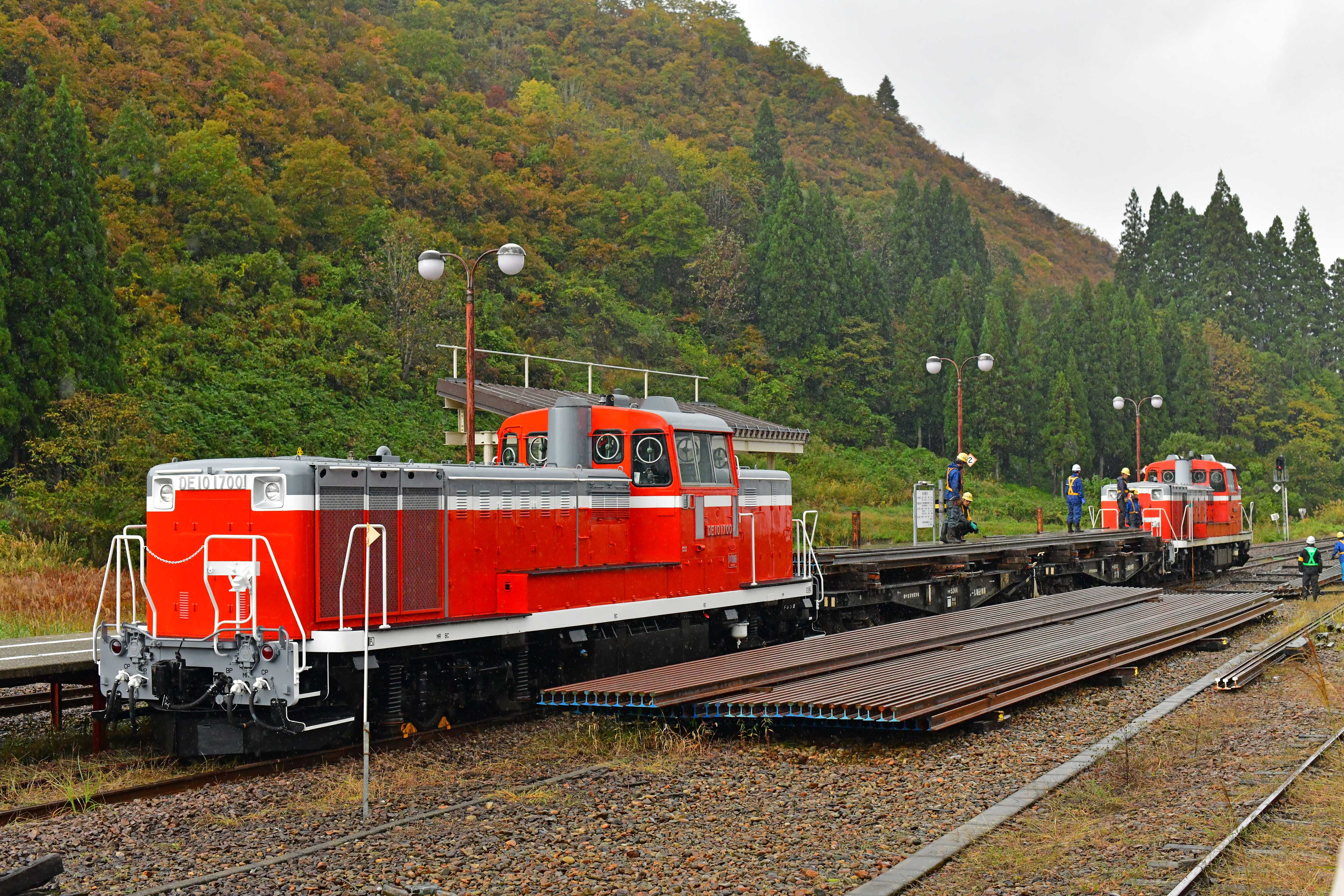 2020(令和02).10.23 只見線大白川〜只見(旧田子倉) DE101680(長岡)+チキ5200型2両(千マリ)+DE101700(長岡) 工9732レ