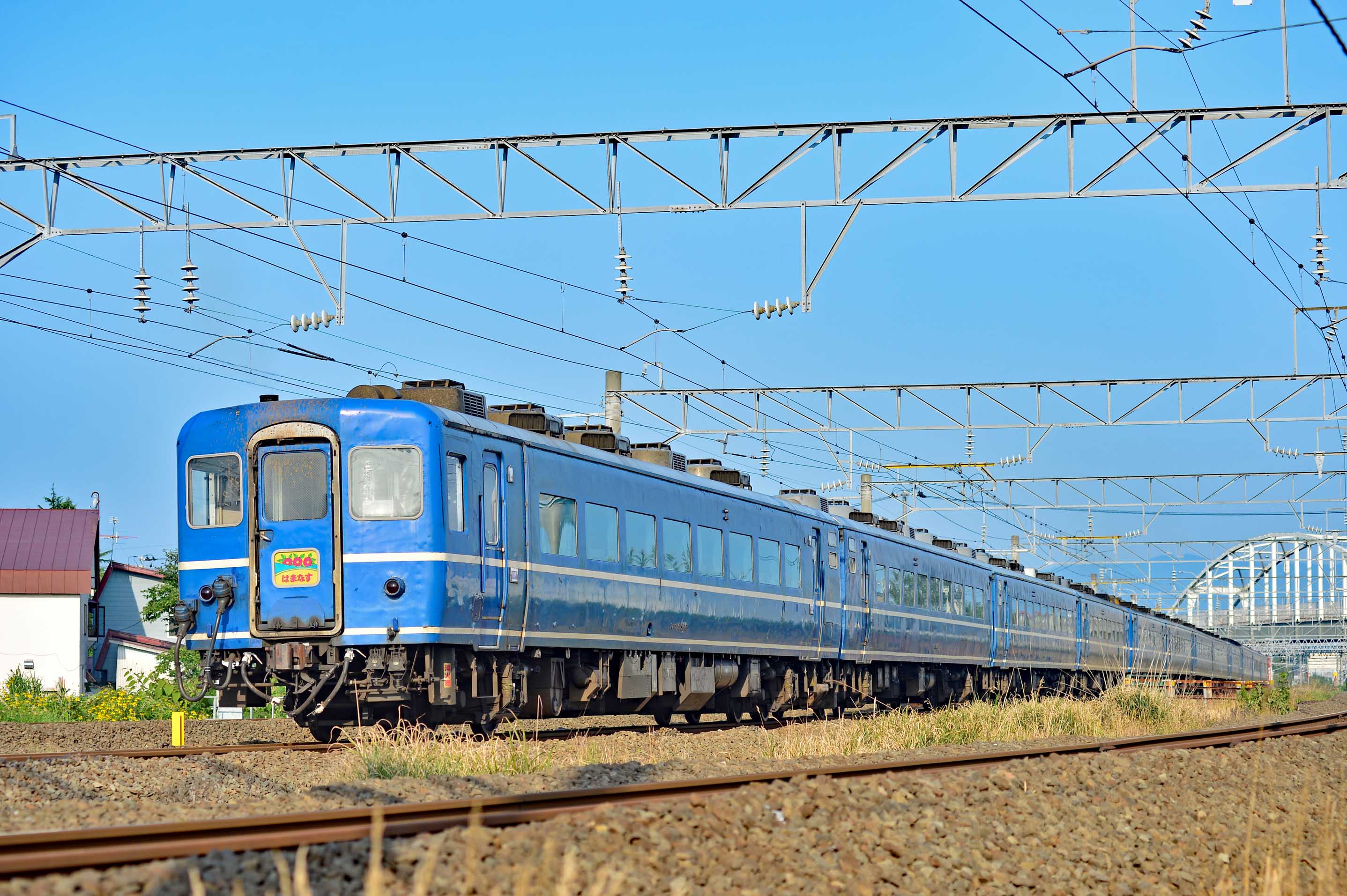 2012(平成24).08.02 津軽線青森 DE101122(青)+24系9両(盛アオ)/クロハ789-101(函ハコ) 構回2021レ/4022M スーパー白鳥22号