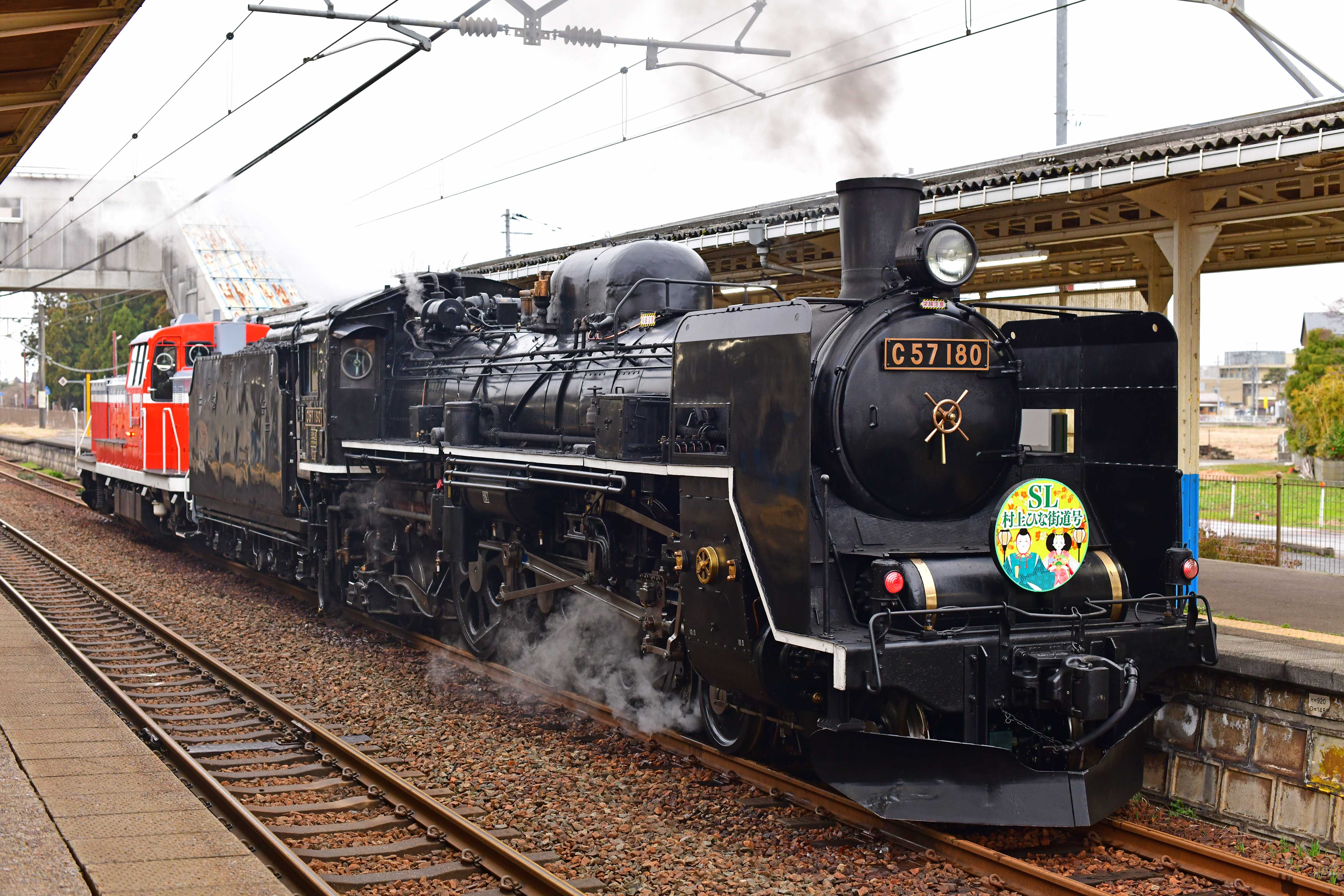 二日目はSLに先行して新津から村上へ単機回送されるDE10を撮影しに新津〜京ヶ瀬の阿賀野川橋梁へ。管理人の当初の計画では背後に弥彦山を入れて一発で羽越本線水原口という写真を撮るつもりだったが、通過前に雲行きが怪しくなりものすんげー土砂降り。マニヤ諸氏の三脚は倒れ傘はぶっ飛ばされて現場は阿鼻叫喚でEF510貨物など撮っている暇はない。(笑)管理人もカメラバッグを自宅から持参したゴミ袋に丸ごと入れて傘で風雨を耐える作戦で凌ぐ。DE10新津発車時刻となり一瞬雨が止んだので大急ぎでカメラをセットして何とか撮影。その後は再び土砂降りとなり駅へ戻る頃にはびちょびちょ。体温で濡れた衣服を乾かす作戦に出るがとても渇かないしマニヤによって待合室は占拠されているので裏1番側の跨線橋で雨を凌ぎつつ、新発田行きキハに乗って往復して暖房の効いた暖かい車内で乾かす事にした。復路は水原駅でDE10+C57をじっくり撮る事にしたが、ELひな街道が停車中に通過するので駅は朝の通学時間帯よりもマニヤ諸氏で大混雑。久々の1700号機なのでテンションの高くなった管理人は発車まで熱く撮影をしてしまった。苗穂タイプの放熱器ファン飾りが新潟で見れるのもポイント高いし、KE73ジャンパ連結器ホースを前面エプロンに掛けて元遠軽機関区仕様にしてくれれば最高なのですが・・・。各地のDE10が一休車となっていますがSLを除いて最後まで残る機関車は新潟地区のDE10かなと思っています。厳しい状況が予想されますが、最後まで運用に勤しんでもらいたいと思います。